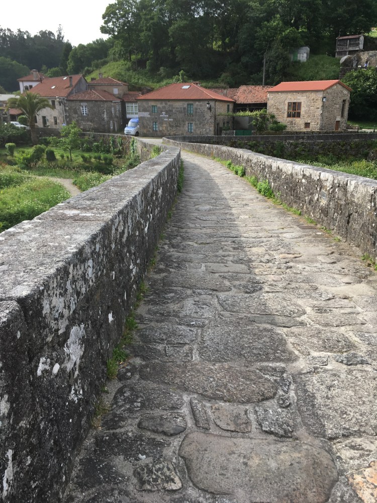 By the way, for those who might be interested. the above is my Compestela, being written in Latin designating the completion of a religious pilgrimage. After walking 14 miles the last day I stood in line nearly an hour with other pilgrims wait to have my pilgrim’s passport validated. The office had 15 lanes going! A lot of pilgrims passed through that day.