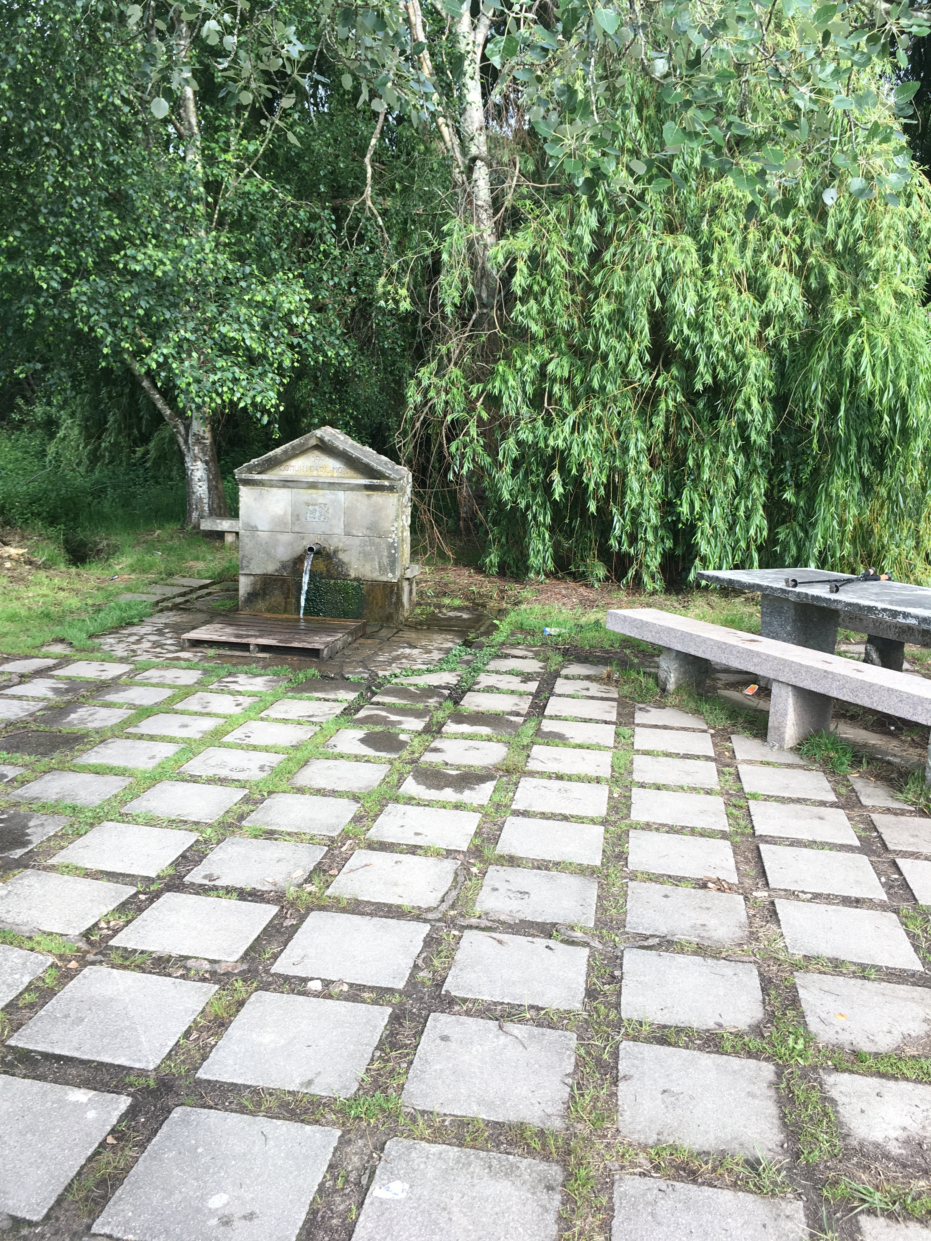 I could not be making this trek without these fountains. These fountains are located all along the Camino specifically for Pilgrims to drink and/or refill their water bottles. One has to be careful though as there are also fonts of non-potable water for foot bathing. Ran across one of those. Fortunately I had learned enough Spanish to know that asqueroso means nasty that I didn’t partake. The stone benches are great to take a load off and sure made getting the pack on and off much easier.