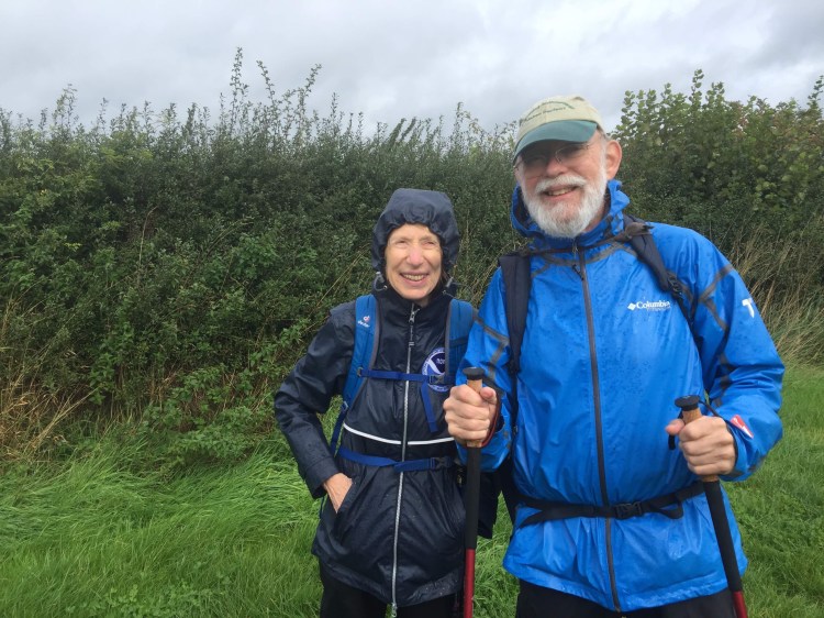 There wasn’t a lot different to see in the beginning pretty much the fields and kissing gates (I wonder how many kissing gates there all in the wall? Has to measure in the hundreds). Finally the rain started to let up and our merry band started to ask hikers from the East when they had started trying to determine why the traffic on the trail seemed so busy. That’s when we met Roger Belcher.