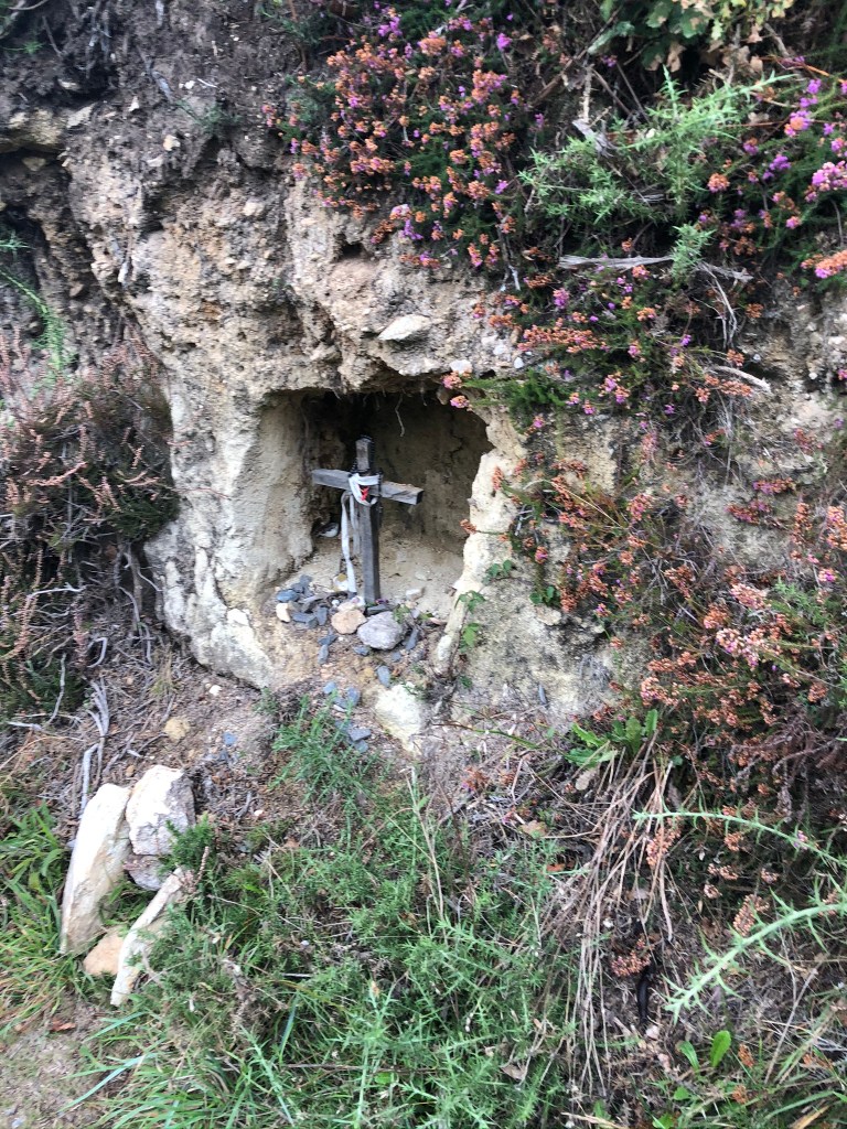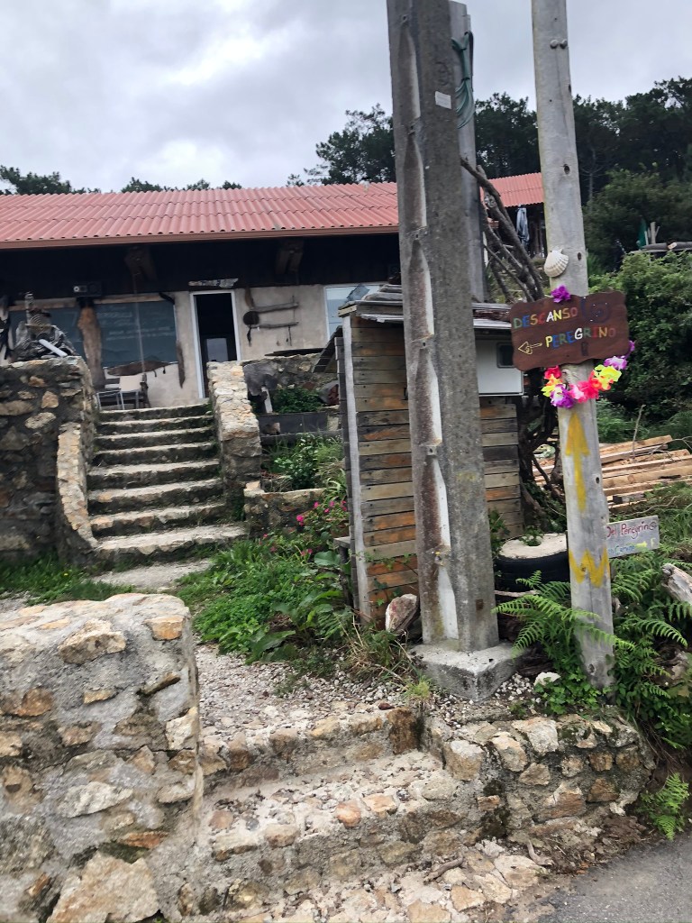 As we got out of town we came across a small cafe which was indicated in the guide book as the only services along the path until we reached our destination of Lires….So, of course, we stopped for a cafe con leche (coffee with milk, the traditional way to drink coffee in Spain….black coffee confuses them, so, when in Rome…). As we came across another small shrine.
