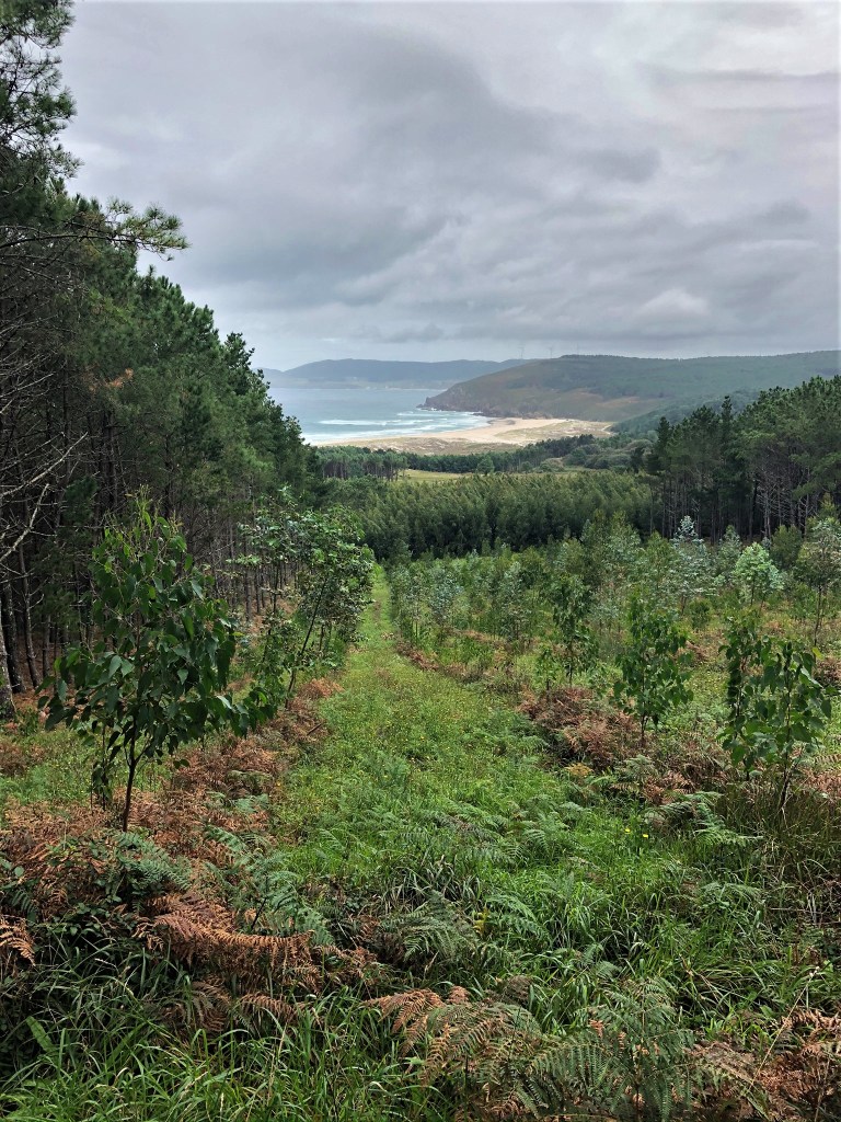 The path passed through a saw mill. THROUGH a saw mill and we had to be wary of heavy equipment as we quickly made our way through. Then we got our first view of the sea: