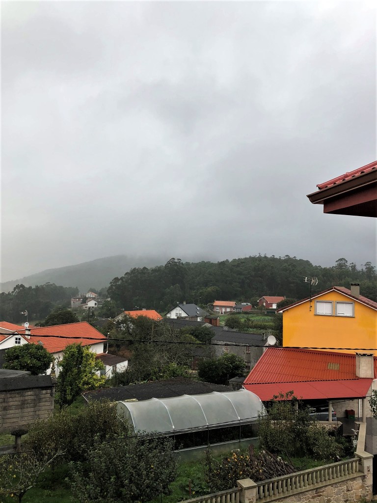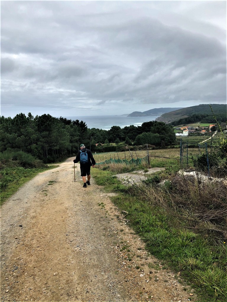 After an enjoyable evening in Finisterre we started out of town on our way to Muxia (Moo SHE a). After a beautiful day the day before, the gray skies were back. But the views on our way out of town were diminished very little.