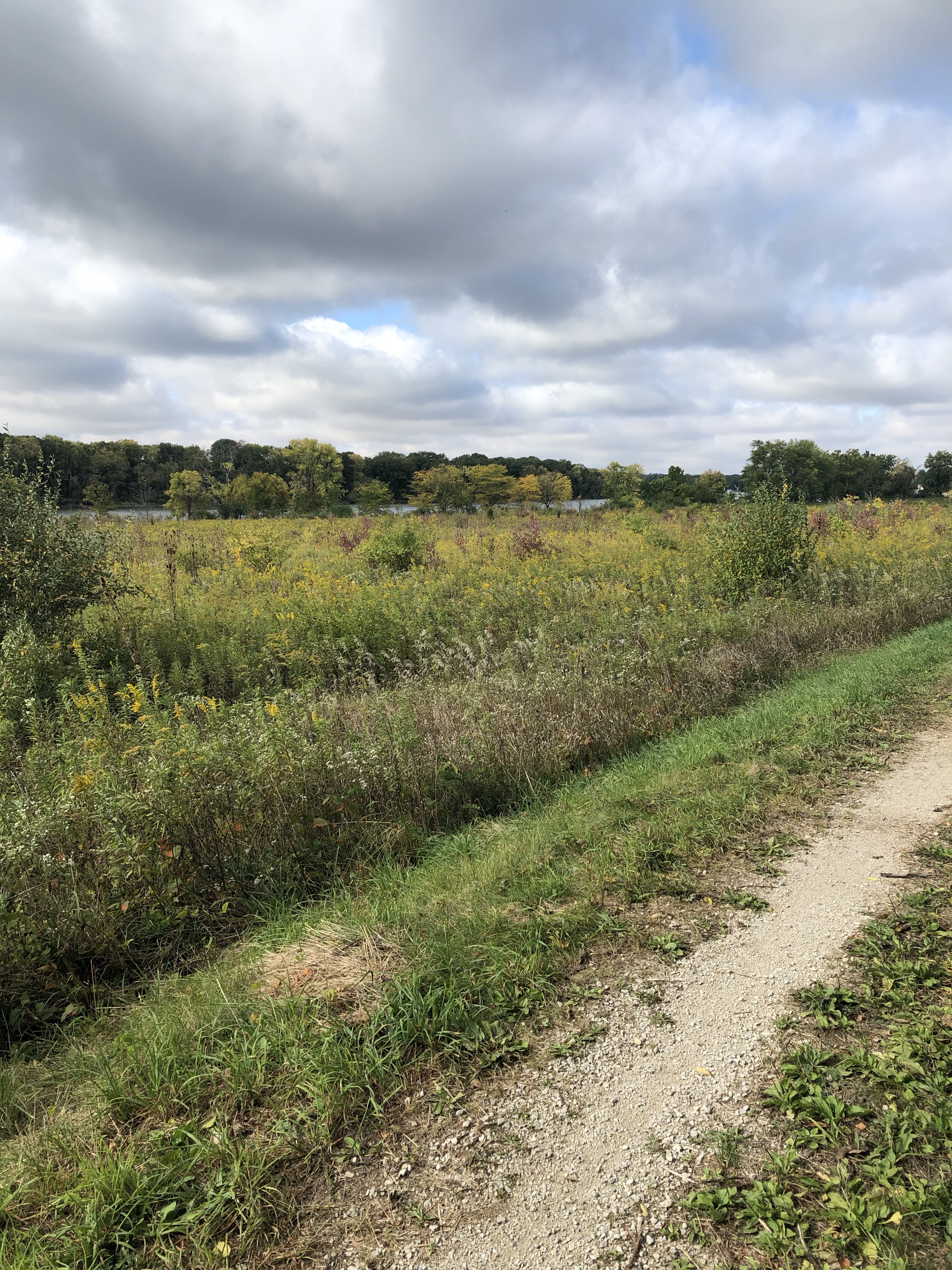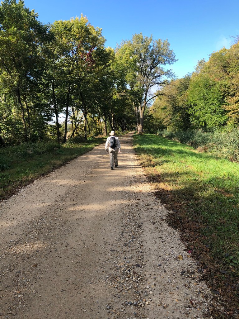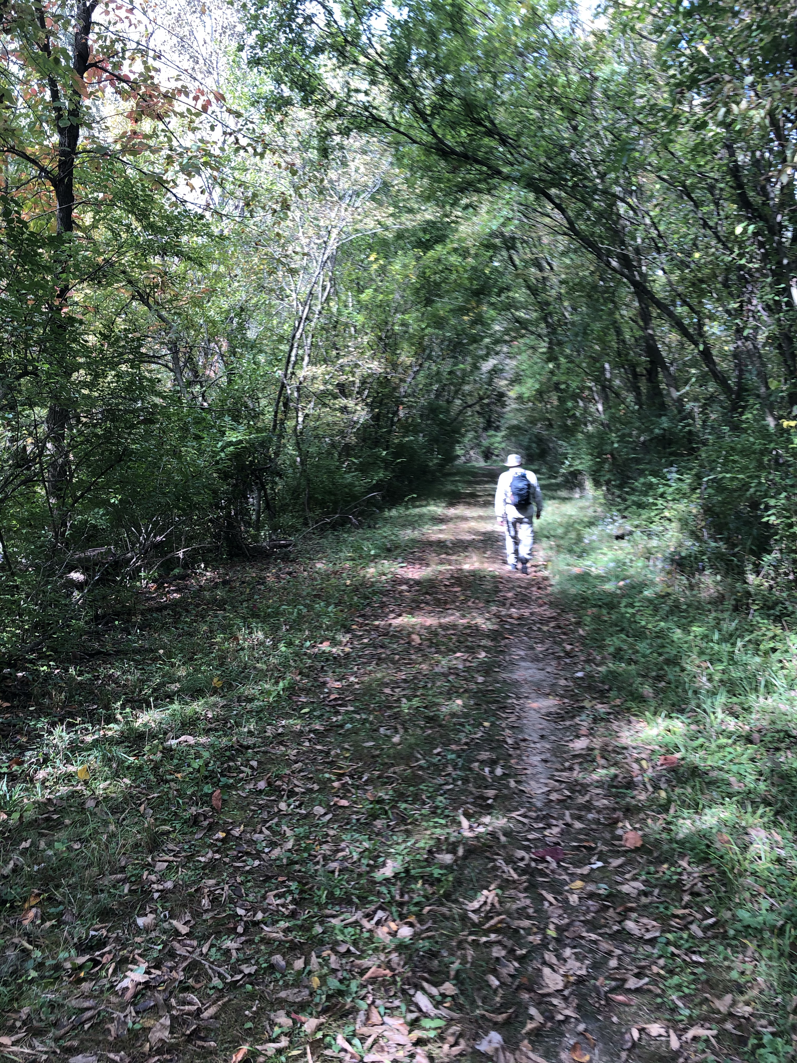 As we left town the path broadened out and foliage thinned. Fields appeared reminding me of places where I used to hunt rabbit and quail with my dad and brother years ago.