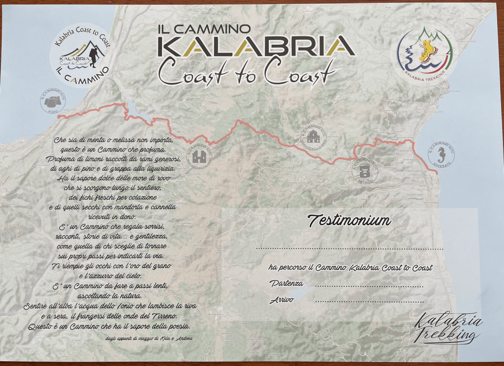At the end of the trek, either in Pizzo or Soverato, one goes to a specific bookstore, or libreria, for validation and receipt of a very nice certificate of completion.