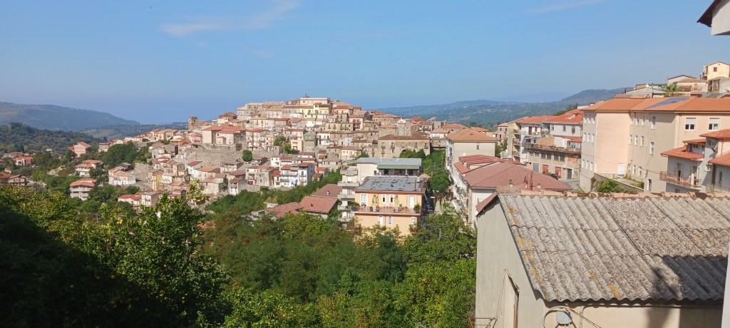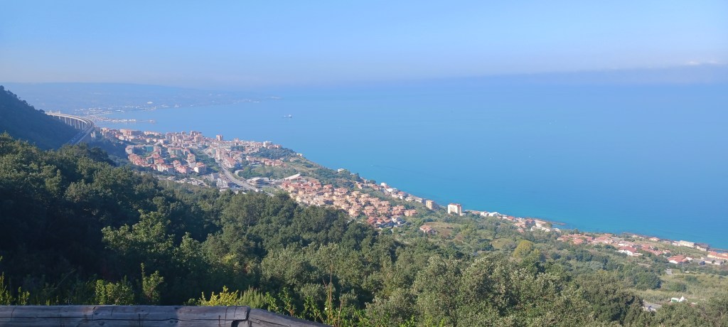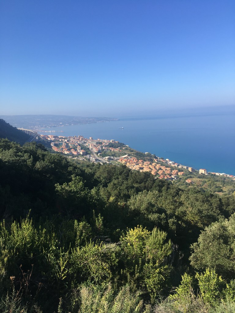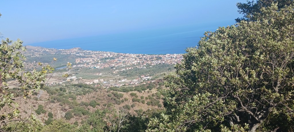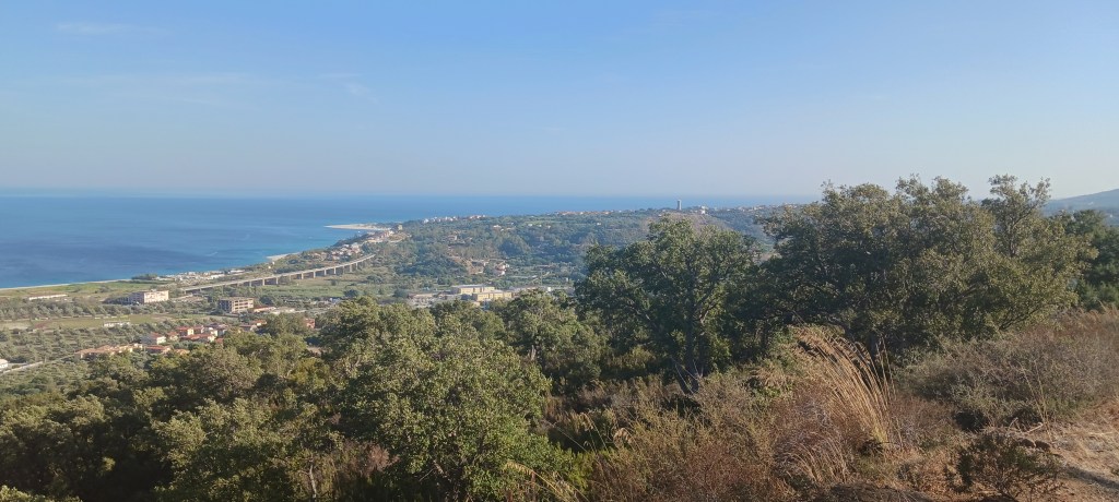 Pettrizzi Ridge Peak Ionian Sea – SJSFirst view Soverato – WLSJust starting down the hill – WLSMoving down the ridge – WLSLooking back towards Petrizzi – WLS