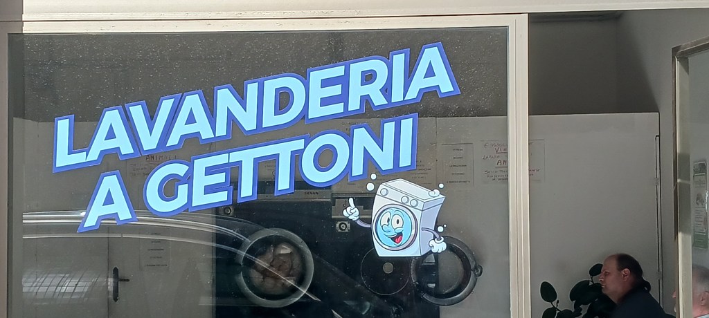 I have now used coin laundries in five different countries in my life (US, Spain, UK, Scotland and Italy) compared to the US, the typical overseas laundry is tiny by comparison 2 to five washers max and half as many dryers so the trick is to get to the coin laundry early before the locals can take up all the machines. The next universal challenge is change, soap and fabric softener if using. In this instance there were no change machines in the lavanderia however,, uniquely, this particular laundry supplied the soap as part of the laundry injecting it directly into the machine at the rate you selected. Of course, I did not realize this until I had a) bought the detergent down the street at a little market where I gave they guy a 10 euro note and he gave me some coin and a five euro note back… I handed him the five back and asked for coin instead and it was “no dispiace” (no, sorry). So, the three of us got to do our laundry in one machine while I went to another market to break the five so we could dry our laundry. Laundry complete, we walked into town looking like three hobos carrying our laundry in parcels while looking for the libreria where we would get our testimonial for the hike.