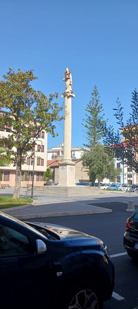 As we moved through the center of town we found a statue of the Virgin Mary erected in 1954, my birthyear which was also a “Marian Year” in the Catholic church designated by Pius the XII to commemorate the 100th anniversary of the inclusion of the Immaculate Conception into Catholic dogma by Pius IX (information courtesy of the University of Dayton, what I know about Catholic dogma could be fit in a small box, a very small box LOL). While it was pleasant in the shade, the Mediterranean sun simply melts me as can be seen in the photo below.