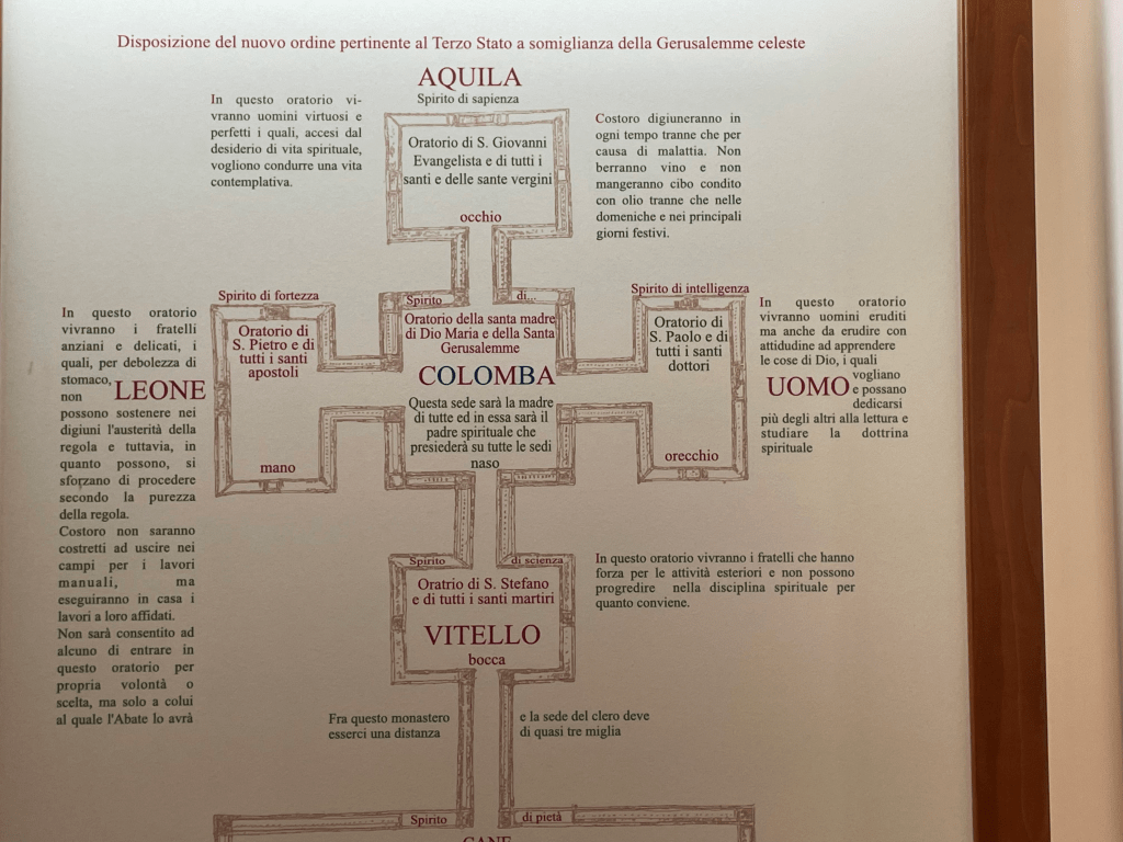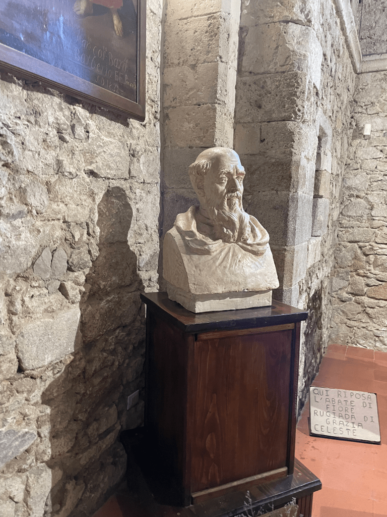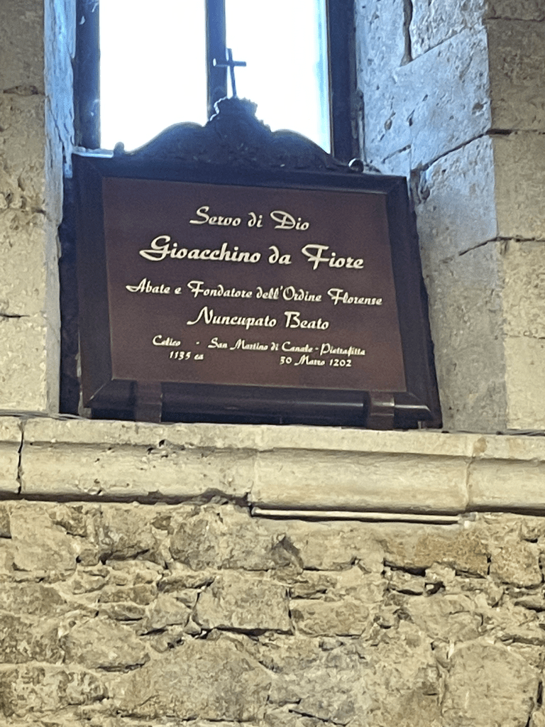 Apologies for all of the Wikipedia quotes but it keeps me from rambling :-). This was a fascinating tour which left me in a “holy cow!” reaction as I realized what I was looking at but simultaneously knew that the thinking behind it was well beyond my ken. While Joachim of Fiore was never beatified as a saint by the Church, on May 29th each year he is venerated as a “beatus” or one who was blessed. Dante, of Dante’s Inferno was a contemporary of Gioacchino, affirmed that miracles were wrought at the tomb of Joachim of Fiore.