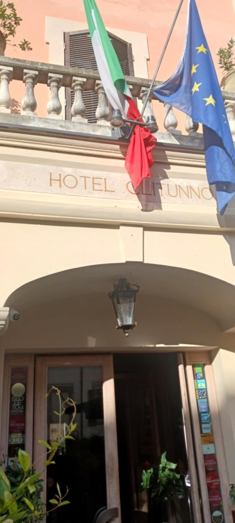 The City of Spoleto is a very arts oriented city with several art museums as well as a music festival and “La Festa da due mondiale” or the Festival of two Worlds which is an exhibition of various artistic disciplines from the medieval and modern worlds which occurs every June. Spoleto is also on the Clitunno River thus it was no surprise when we ended up staying at the Hotel Clitunno which had some interesting artsy type things unto itself.