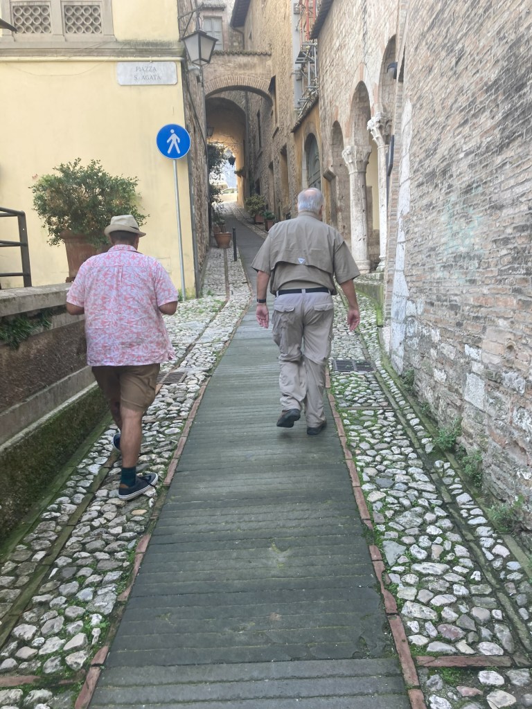 As Giancarlo our luggage transport/taxi driver observed during a discussion about the show, “You always see Don Matteo riding down the stairs, you never see him riding up the stairs.” LOL. I should also note that Spoleto is the home of the Festival of Two Worlds (Festa di due Mondiale) which is a combined arts/jazz festival which occurs at the end of June through early July and that a sister jazz festival is held in Charleston SC USA during the summer as well.