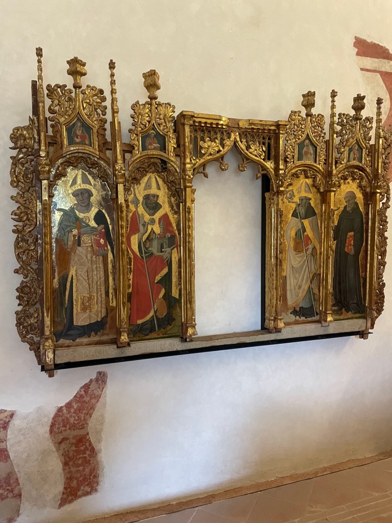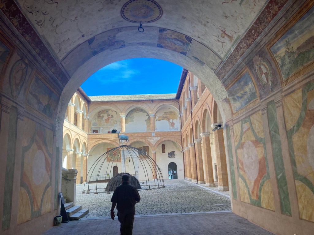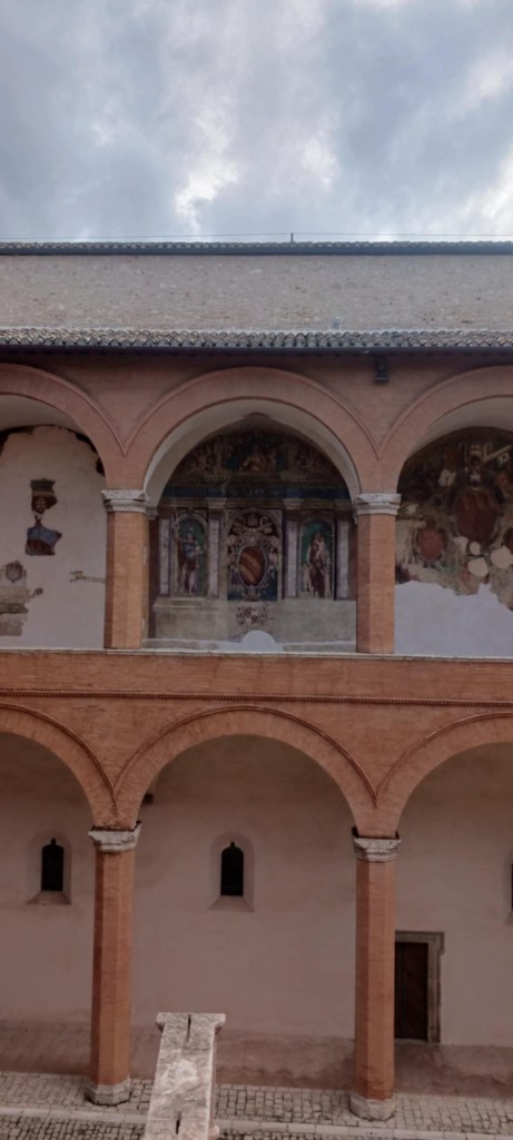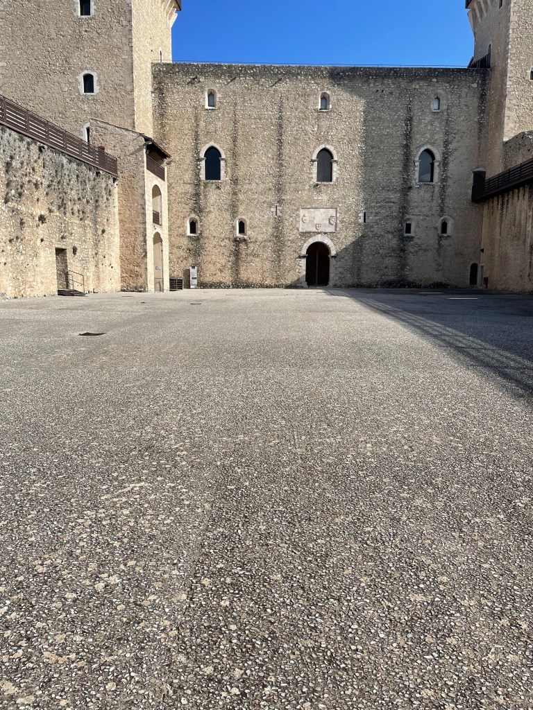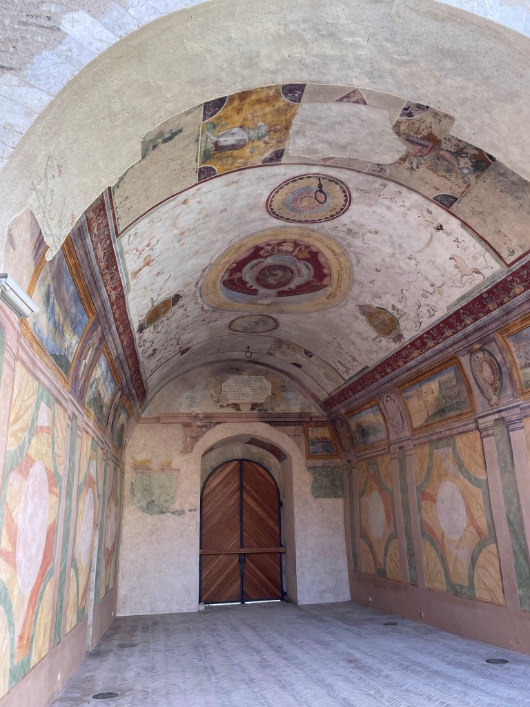 Moving into the castle was our next move and I must compliment the people who organized the museum as the flow made sense to me (and trust me while I appreciate museums generally I have little sense of flow or direction when in a museum which typically means I wander around rather aimlessly) starting with the various functions of the castle over time and then, on the upper level an art museum tracking regional art from pre roman times through the modern era. I am not going to bore you with explain all of the different uses but if you are interested, here’s the link: https://www.comune.spoleto.pg.it/turismoecultura/en/