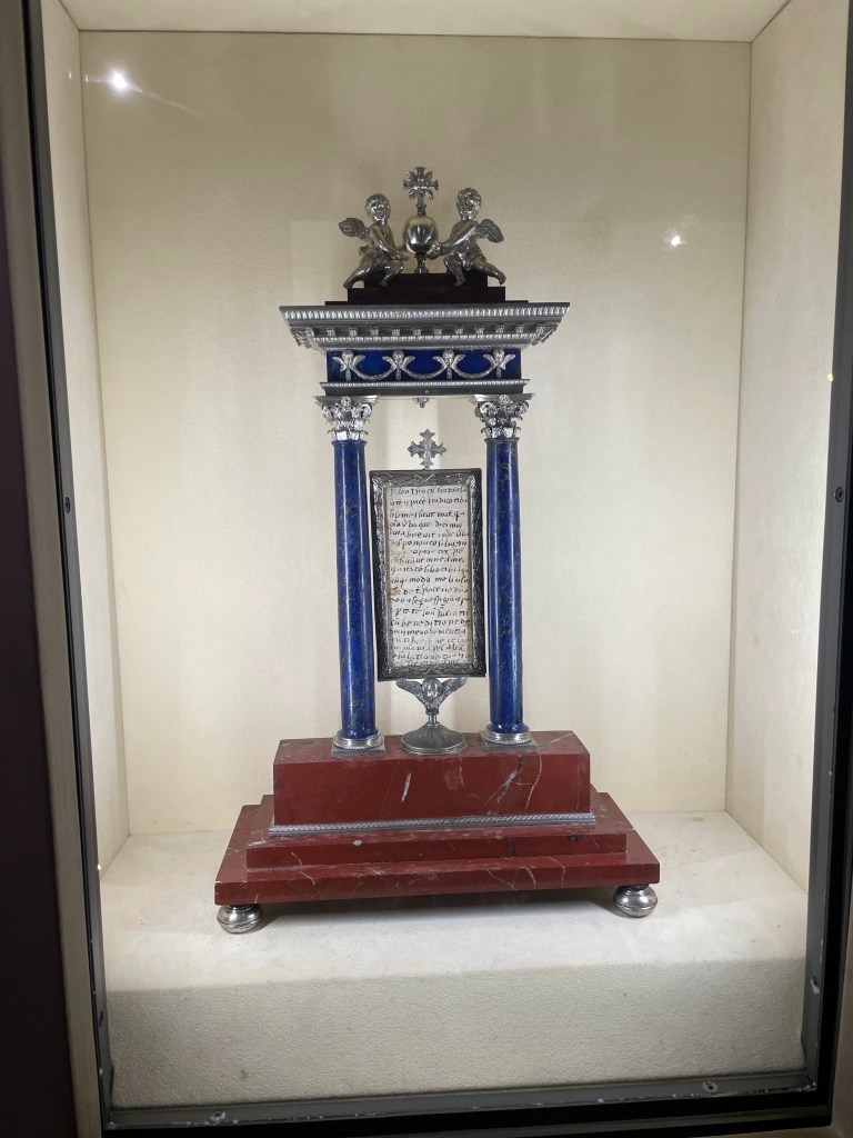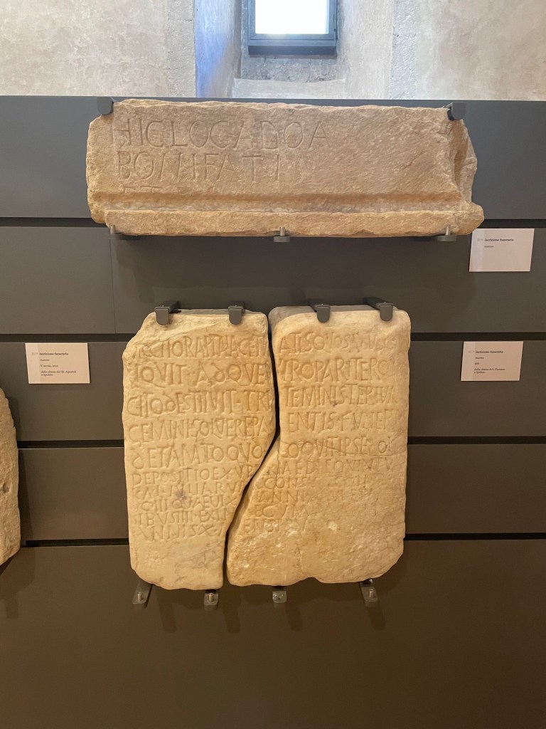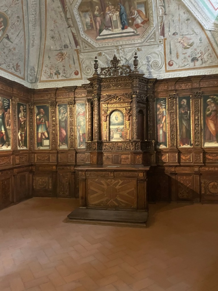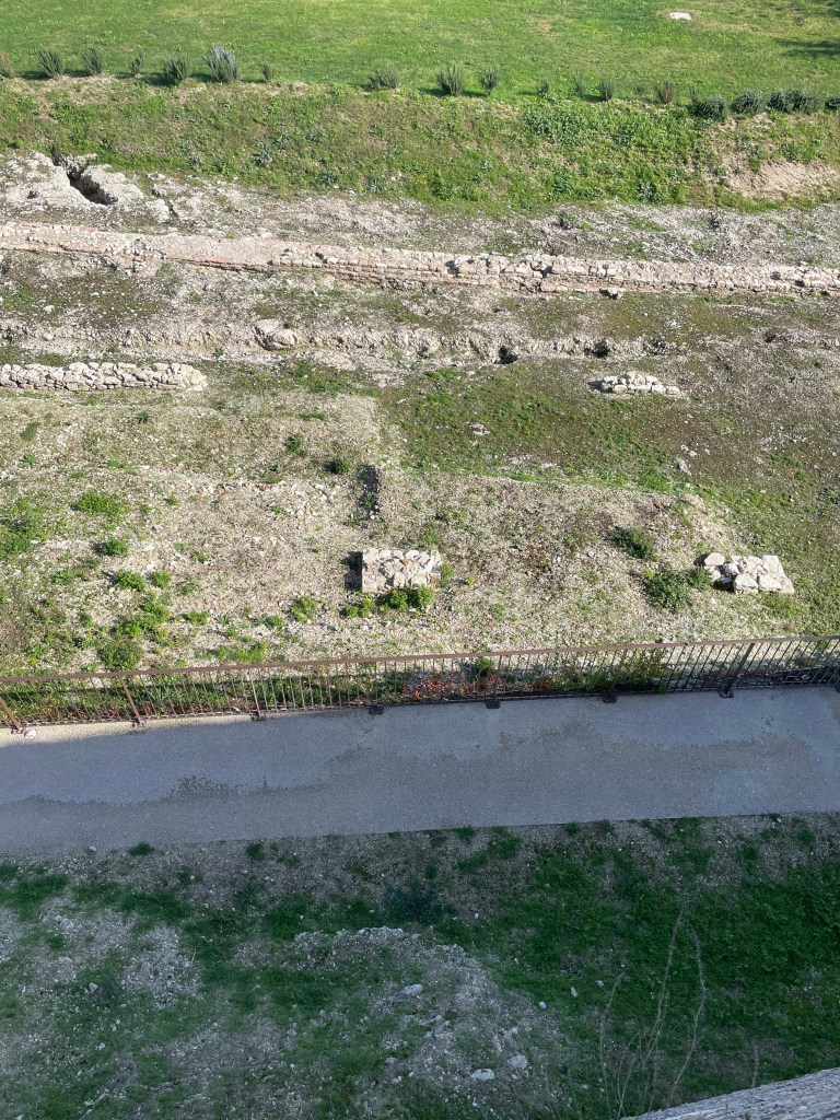 Moving into the castle was our next move and I must compliment the people who organized the museum as the flow made sense to me (and trust me while I appreciate museums generally I have little sense of flow or direction when in a museum which typically means I wander around rather aimlessly) starting with the various functions of the castle over time and then, on the upper level an art museum tracking regional art from pre roman times through the modern era. I am not going to bore you with explain all of the different uses but if you are interested, here’s the link: https://www.comune.spoleto.pg.it/turismoecultura/en/