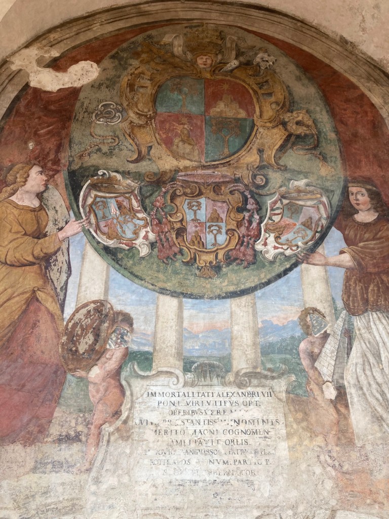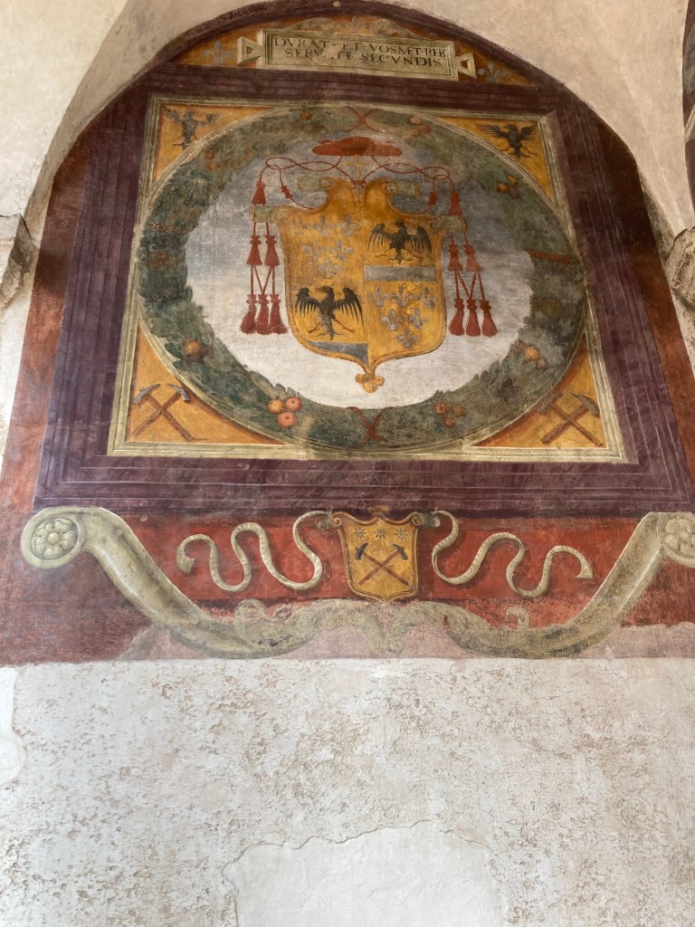 As one moves along through the castle their is a second piazza in the area where the regent and their retinue would reside. In this area several frescoes have been at least partially restored.