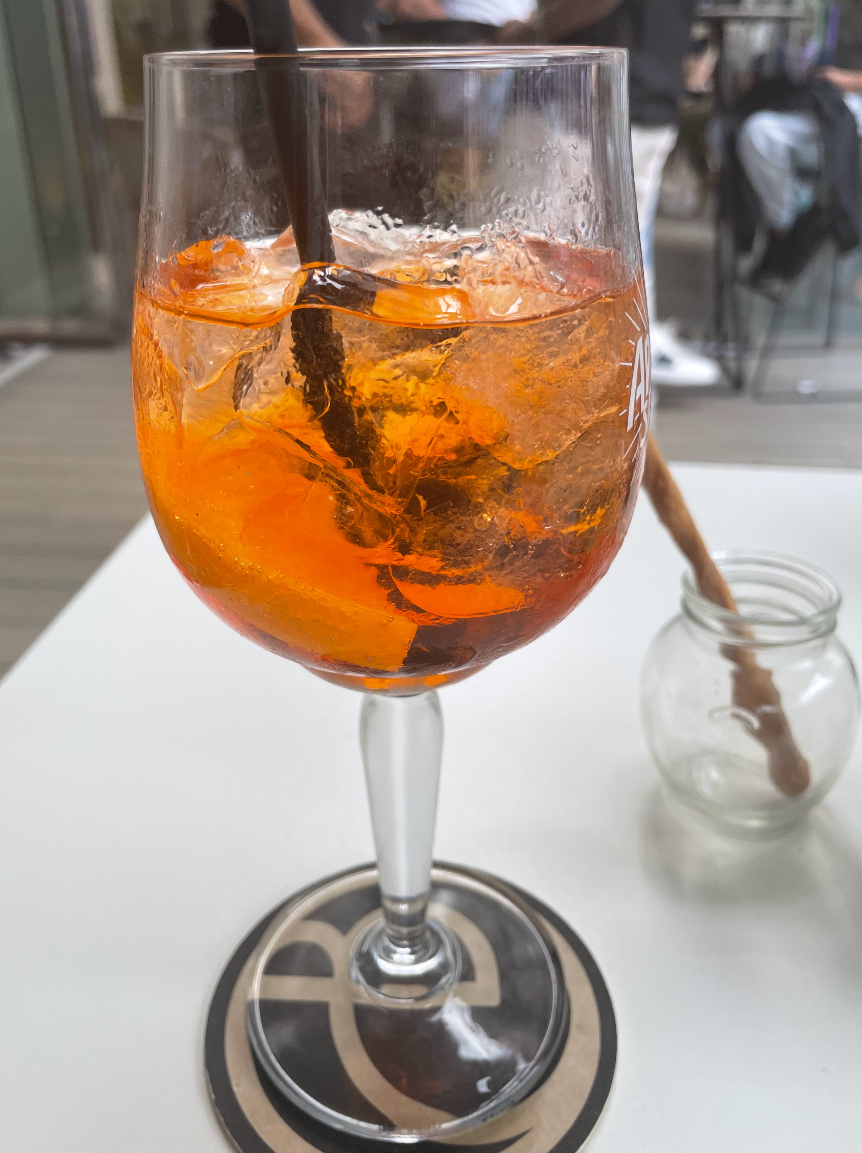 It was a warm day, so I took an opportunity to take a seat, cool my heels and partake of one of the most popular mixed drinks in Italy, an Aperol Spritz.