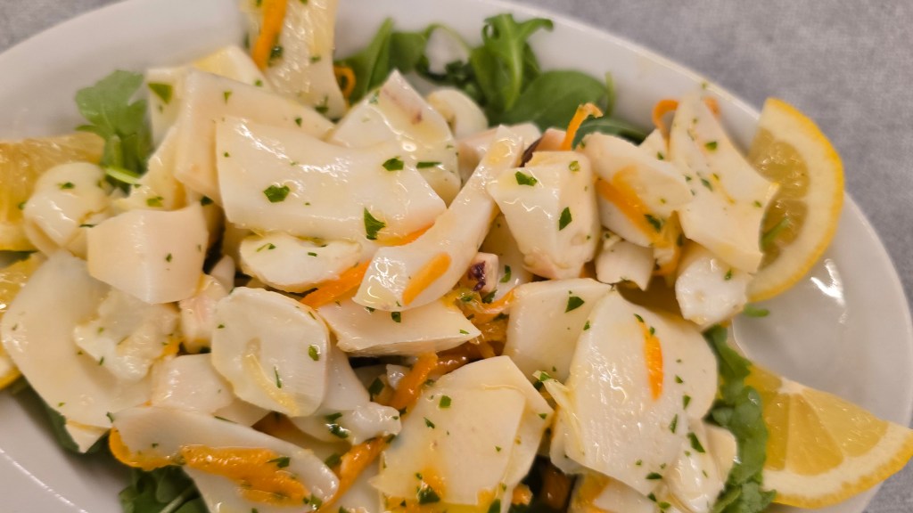 After settling in the group walked down through a lovely city park to our first dinner together. Vasto, in the Chieti province of Abruzzo, is on the Adriatic sea. Thus, Seafood is an important part of the Abtuzzi cuisine. Now I have to be honest, seafood is not my long suit as I am a Midwest beef and pork kind of guy, but seafood well done (as in prepared well, not cooked well) I have always found to be a pleasant experience.